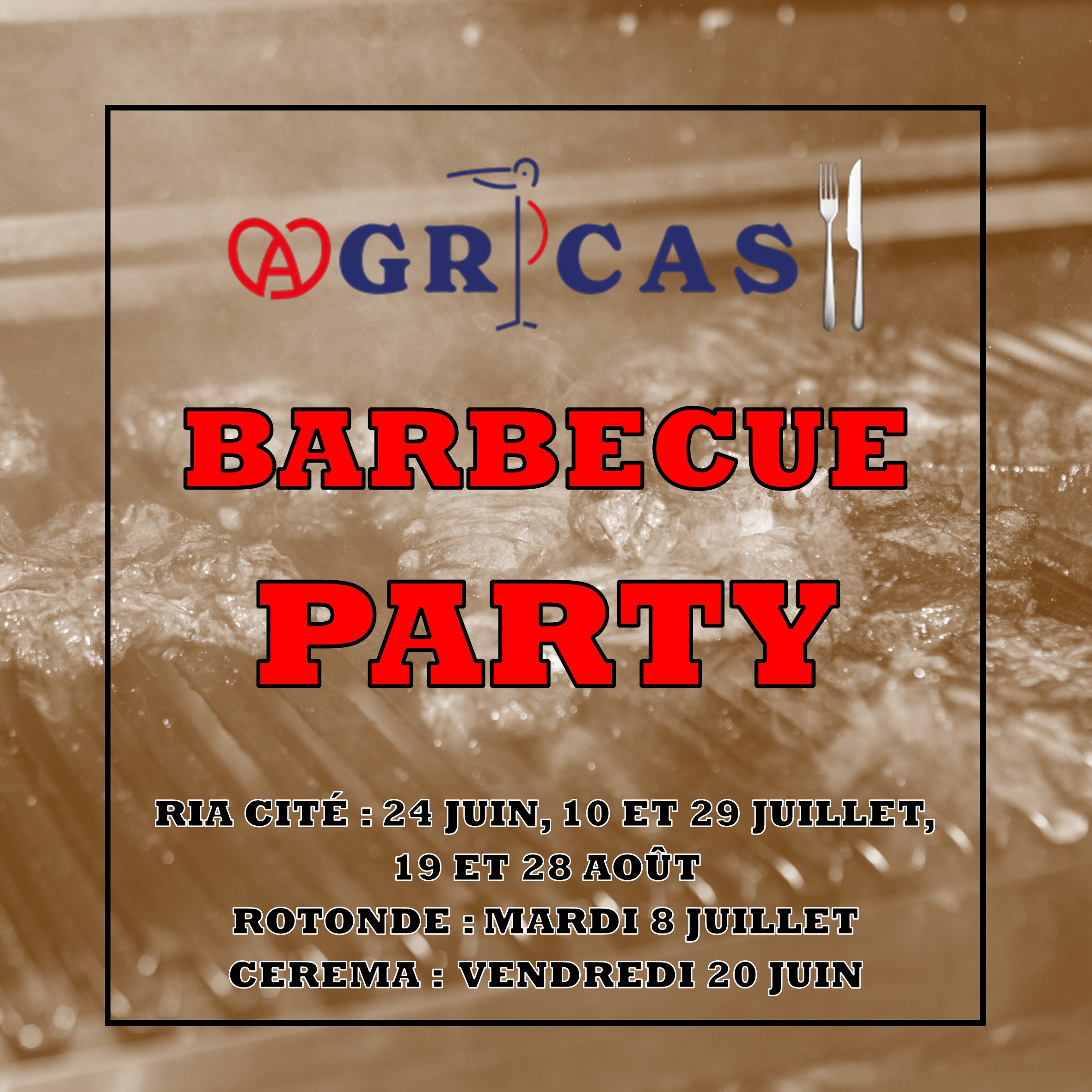L'AGRICAS a le plaisir d'organiser ses traditionnels barbecues de l'été : RIA de la Cité : 24 juin, 10 et 29 juillet, 19 et 28 août Rotonde : mardi 8...