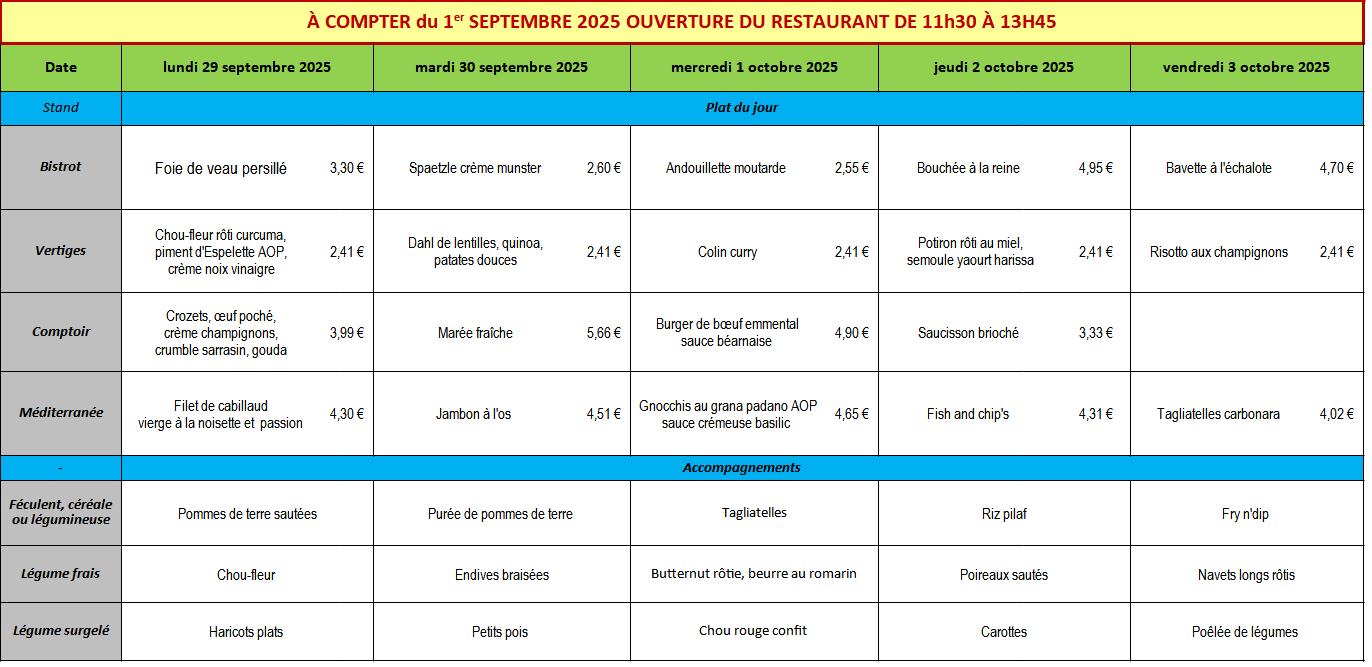 Découvrez ci-dessous le menu de la semaine (cliquez sur l'image pour agrandir) :
