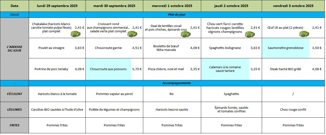 Découvrez ci-dessous le menu de la semaine (cliquez sur l'image pour agrandir) :