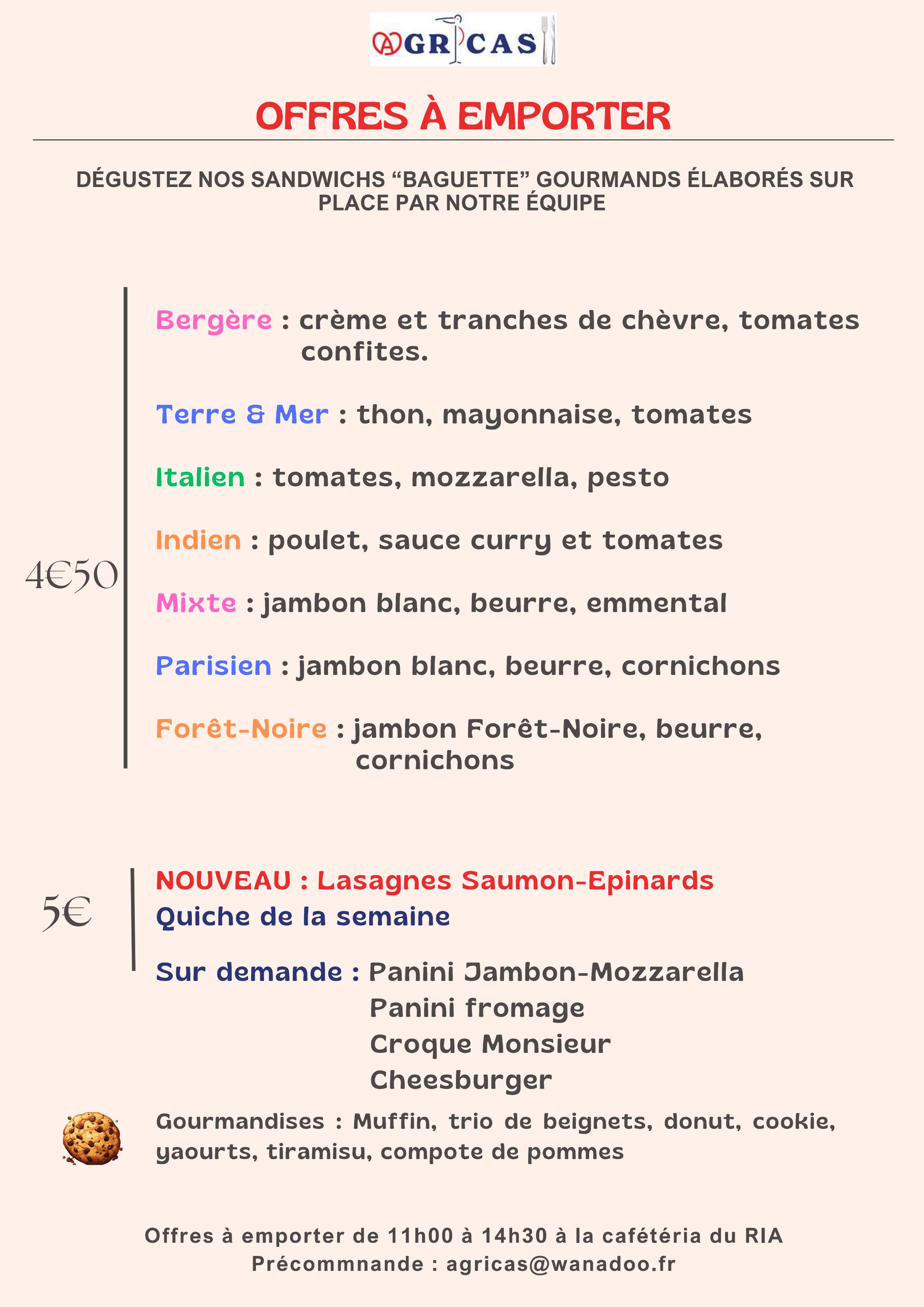 La Cafet vous attend du lundi au vendredi de 11h00 à 14h30 avec un offre de diverses boissons chaudes et froides, mais découvrez et dégustez également nos sandwichs gourmands élaborés sur place par notre équipe (précommande à